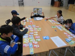 10月7日(土)~21日(日)に、各区民センターで防災カードゲームを実施しました。 はじめに、話合いがスムーズに進行するようにレクリエーションや自己紹介をしてから、災害が起きたときに身の回りにある物を工夫して使用する方法を考え、知恵や意見を出し合い、災害を楽しく学ぶ機会となりました。 参加したみなさんからは、 「災害のときに乗りこえるためには、色々な考えがあって答えは1つではないんだなと思いました。」 「今回の防災ひろばでみんなの意見を聞いて、自分では思いつかなかったことなど色々聞けました。家の中にある物を使って防災に備えたいです。」 などの感想がありました。