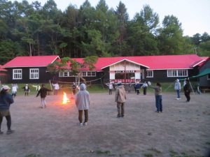 1年に一度、中級研修生が上級研修会に参加し、1泊2日共に過ごしながら、野外活動を行う機会で、おたる自然の村の二杉寿志さんを講師に招き、レクリエーションやまき割り、キャンプファイヤーの準備や企画について実演も交えて、さまざまなアドバイスをいただきました。
