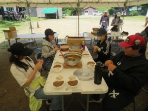 夜はキャンプファイヤ―、朝は野外炊事でカレーライスづくりなど、野外活動の実践では、初めて経験する研修生もいる中で、上級研修生が主体的に運営し、それぞれに新たな学びを得る機会となっていた様子がうかがえました。