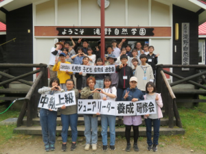 札幌市内10区のジュニアリーダーの中学2~3年生と高校生が集合し、ジュニアリーダー中級・上級研修会を6月29日(土)~30日(日)に滝野自然学園で宿泊研修を実施しました。