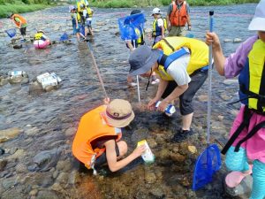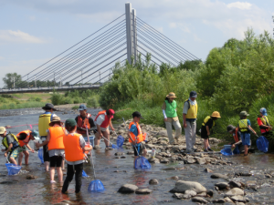 札幌開発建設部札幌河川事務所と札幌市豊平川さけ科学館(公益財団法人札幌市公園緑化協会)に協力連携を頂き、 第1回目は、7月1日(月)~7月20日(土)に自宅で札幌の川とその生き物についての動画を見てワークシートに取り組み、牛乳パックで水中メガネづくりを行いました。 参加したみなさんからは、 「水中メガネを作るのが楽しかった」 「楽しかった。川に行くのが楽しみ」 という感想が寄せられました。 第2回目は、7月20日(土)に実際に豊平川に行き、ライフジャケットの装着のしかたや川で安全に遊ぶためのお話を聞いてから川に入り、作成した水中メガネで観察を行いました。 参加したみなさんからは 「川には色々な魚がいてびっくりしたし、とても楽しかったです」 「魚をさわった時ぬるぬるしてビックリしました。」 などの感想が寄せられ、豊平川の生き物に触れ、川の豊かさを実感したことが伺えました。