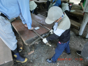 第2回目は、7月21日(日)に、実際に手稲の森へ行き、森林探検と第3回目に取り組むウッドクラフトの素材を加工する体験を行いました。
