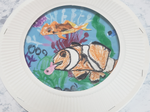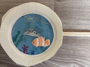 新さっぽろサンピアザ水族館で観察したことを参考に、自宅で紙皿水族館の工作に取り組みました。