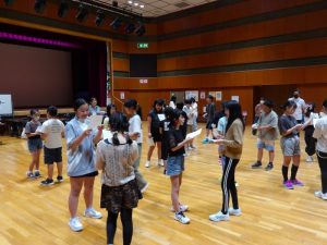 ほかにも、体を動かしたり、声を出すゲームでは学年や学校の垣根を超えて研修生同士が交流を深めていました。