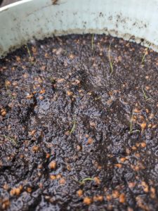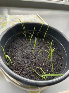 「芽出しあとの種まきのときは小さかったのに、今は大きくなって、しゅうかくがたのしみです」