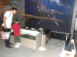 第1回を7月12日(土)、第2回を7月26日(土)に鵡川漁業協同組合に協力連携をいただき、小学2年生親子対象の漁業体験活動を計画しましたが、両回とも、高波のため、代替プログラムとして「むかわ町穂別博物館」へ行き、化石などを見学しました。