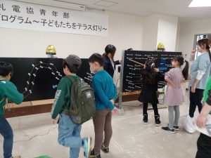 第2回目は、11月29日(土)に北海道電気会館に集まり、自宅で取り組んだ電気クイズの答え合わせや、電気工事のお仕事体験、電気をつかったあみだくじやイライラ棒などを楽しみました。
