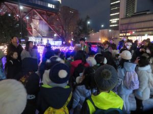12月6日(土)に、創成川公園にて、第2回目プログラムで完成させたペットボトルツリーの点灯式が行われました。